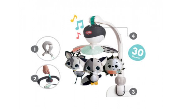 Tiny Love Take Along Mobile Magical Tales, er den perfekte stimulering. Det er 3-i-1-udviklings mobilens design bruger kontrasterende sort-hvide farver for at opmuntre barnets syn fra dag et.