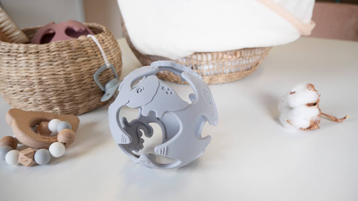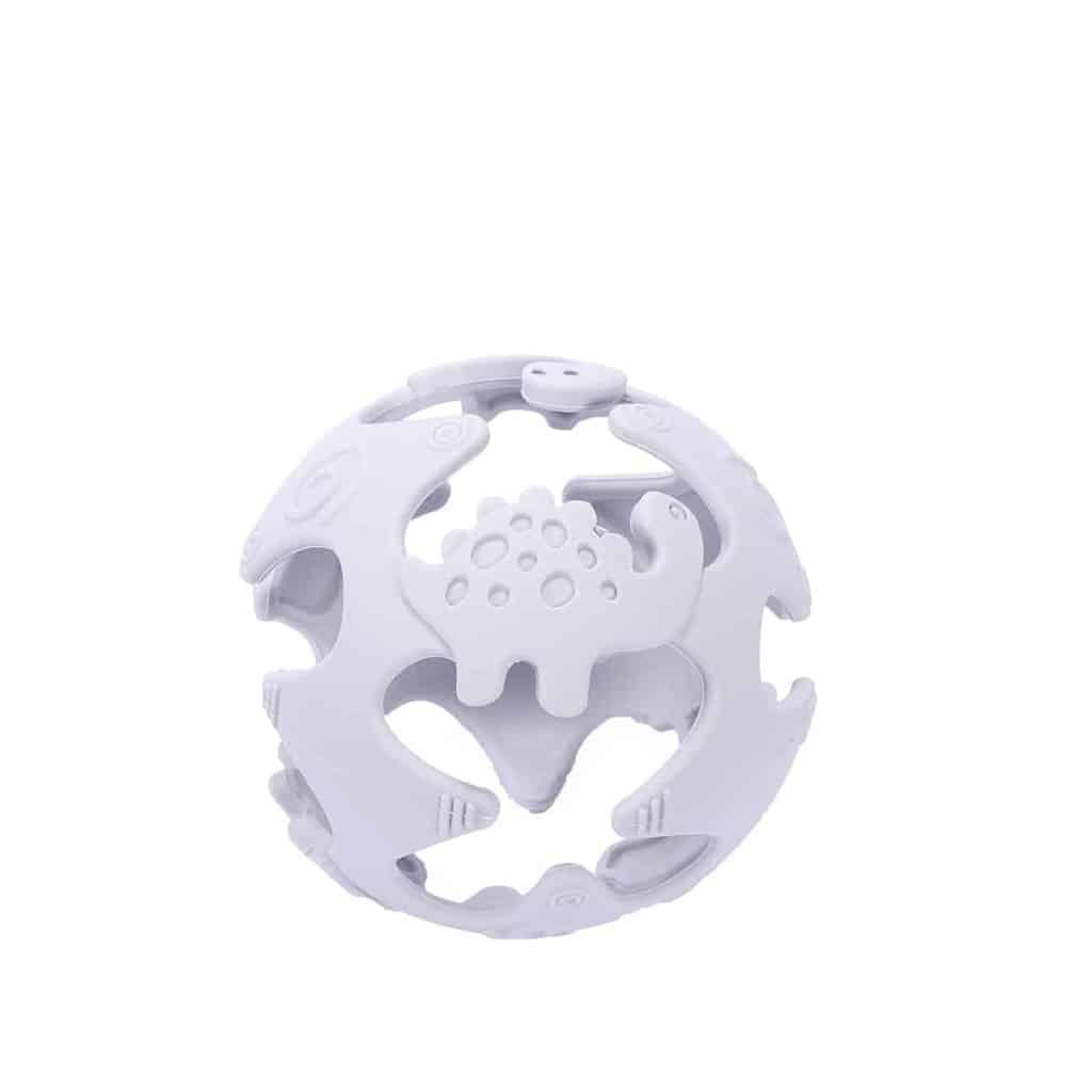 Bold produceret af 100% fødevaregodkendt silikone. Fleksibel og nem at gribe fat om. 4 dinosaurer gør bolden sjov at undersøge, og stimulerer baby's føle og synssans. Blød silikone gør den behagelig at lege med, og masserer nænsomt babys ømme gummer under tandfrembrud. Egnet fra 4 mdr.