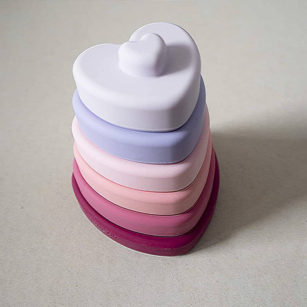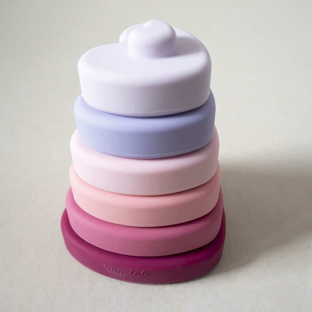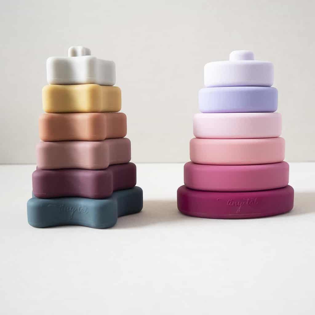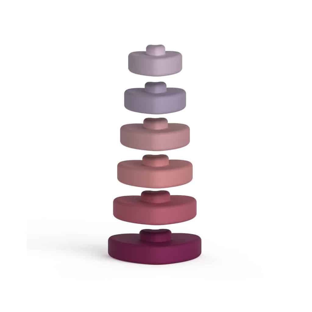 Super sødt stabeltårn produceret af 100% silikone i blød og lækker kvalitet. De 6 stykker i forskellige størrelser og farver, kan nemt dannes til et fint tårn når de stables ovenpå hinanden. De flotte farver og udformningen på stabeltårnet, stimulerer barnets sanser og finmotorik allerede fra 5. mdrs. alderen. CE godkendt. Vaskeanvisning: Til daglig rengøring anbefales det at vaske legetøjet ved håndvask i mildt sæbevand, tør produktet grundigt af. Tåler opvaskemaskine. Materiale: 100% silikone fri for BPA og PVC. Mål: H: 12,6 cm. x D 8,5 cm. x L 9,5 cm