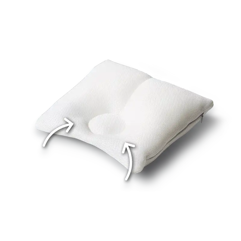 Da babys kranier stadig er bløde i starten, kan ensidige liggepositioner føre til deformation af hovedet. Den unikke 2-kammer pude udviklet af Träumeland holder hovedet i optimal position. Det kan dermed udvikle sin normale fysiologiske form, og eksisterende asymmetrier kan modvirkes. Nakken får optimal støtte, og det lille hoved kan bevæge sig frit.
