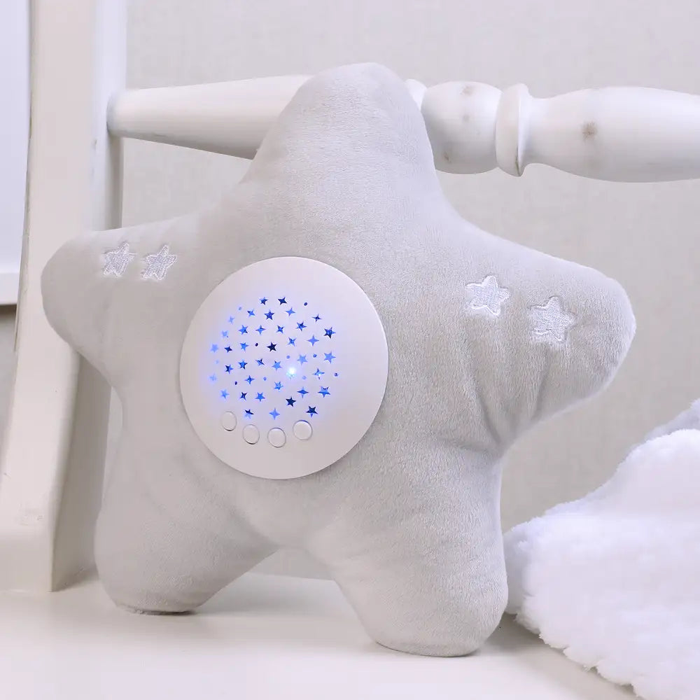Natlampen fra Little Chick London projekterer en farvet stjernehimmel op i loftet og skaber er blidt lys i rummet. Den bløde natlampe kan afspille 10 forskellige melodier, hjerteslag og fuglesang alle beroliger barnet til en tryg nattesøvn. Natlampen har et blødt plysbetræk der kan tages af og vaskes ved 3o grader. Lampen bruger 3x AAA batterier (medfølger ikke).