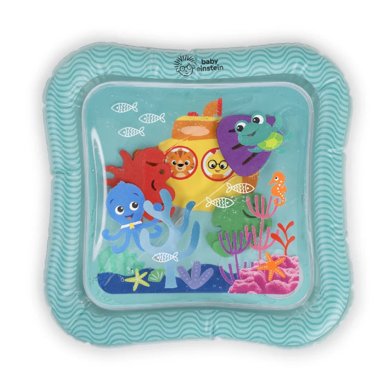 Oplev undervandsverdenen sammen med din baby og Baby Einstein Opus's Ocean of Discovery vandmåtte. Du skal blot fylde midten af madrassen med vand og puste den yderste kant op med luft. Mens barnet leger i siddende eller liggende stilling, kan det arbejde med muskeludvikling, mens det bevæger de seks svømmende havdyr under overfladen. Perfekt til nysgerrige børn fra 0+. Når baby rører ved måtten og ser undervandsdyrene svømme, lærer barnet om årsag og virkning. Vandmåtten hjælper med at engagere spædbørn og småbørn og fremmer samtidig udviklingen af grovmotoriske færdigheder hos barnet. Rengøring er yderst let - luk vand og luft ud, tør måtten af, og fold den sammen til opbevaring eller transport. Brug måtten derhjemme eller tag den med dig på eventyr på farten, så dit barn kan opleve undervandsverdenen med alle sanser når som helst og hvor som helst.