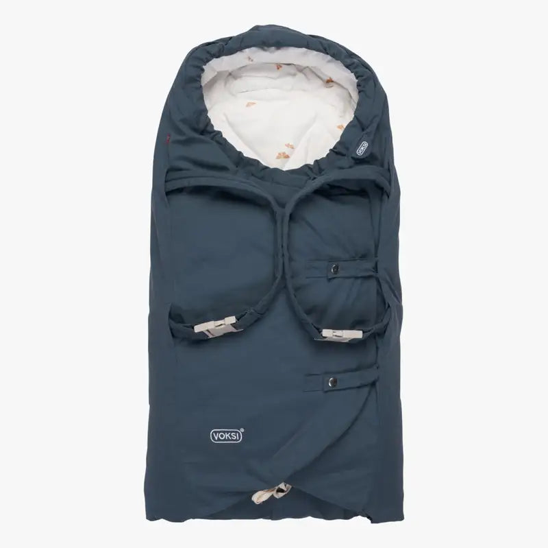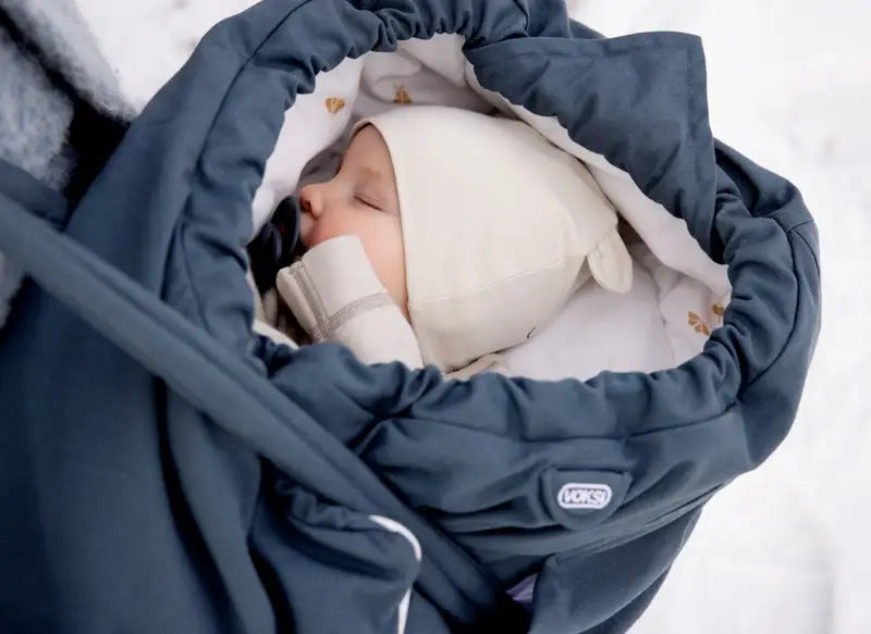Voksi® Carry er en kørepose med svøbe- og bærefunktion til brug året rundt.