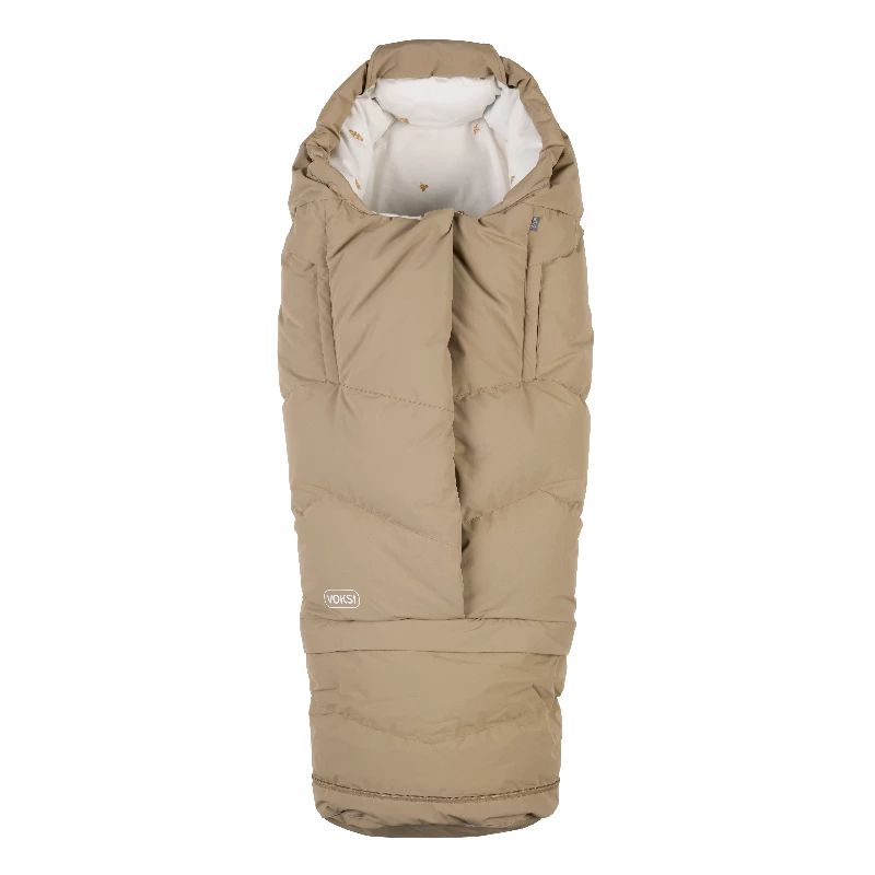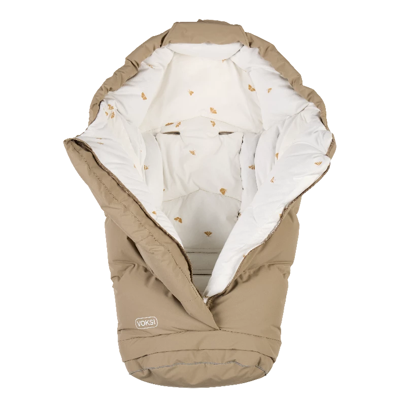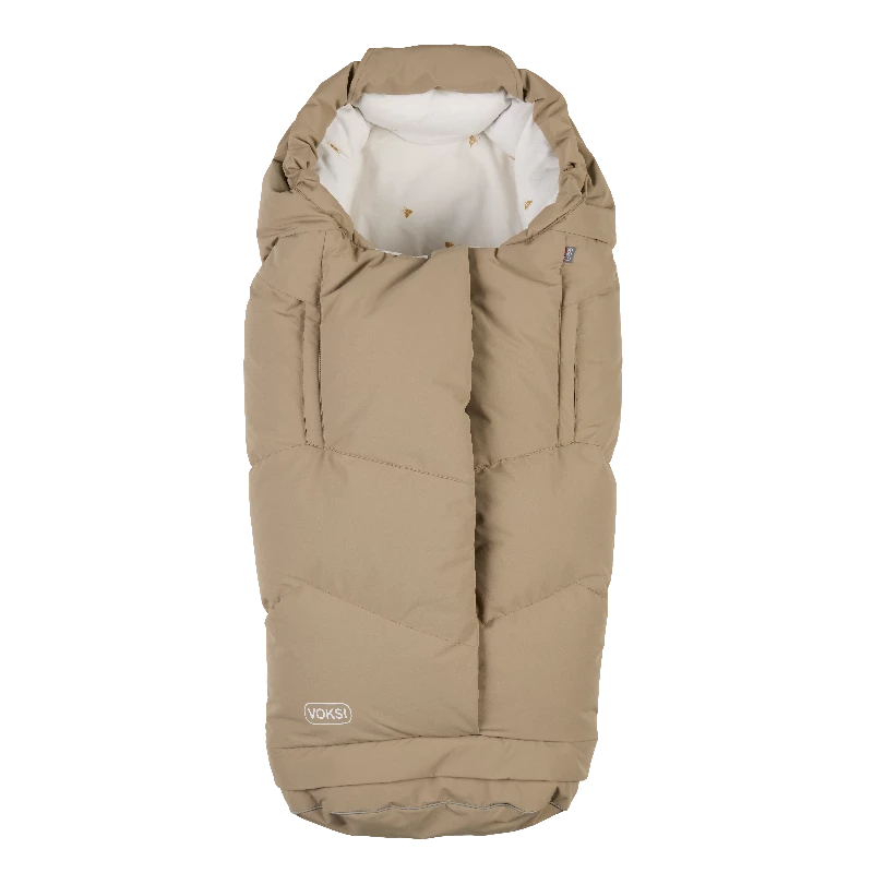 Køreposen består af naturlige og kvalitetssikre materialer som uld og dun. Voksi City North har uld i ryggen, som temperaturregulerer og sørger for at barnet holdes tørt. Fyldet er af højkvalitetsdun og posen er syet med en unik bokskonstruktion, der forhindrer kulde i at slippe ind. Det er luften mellem dunfibrene som giver maksimal isolering og holder barnet varmt i det kolde vejr.