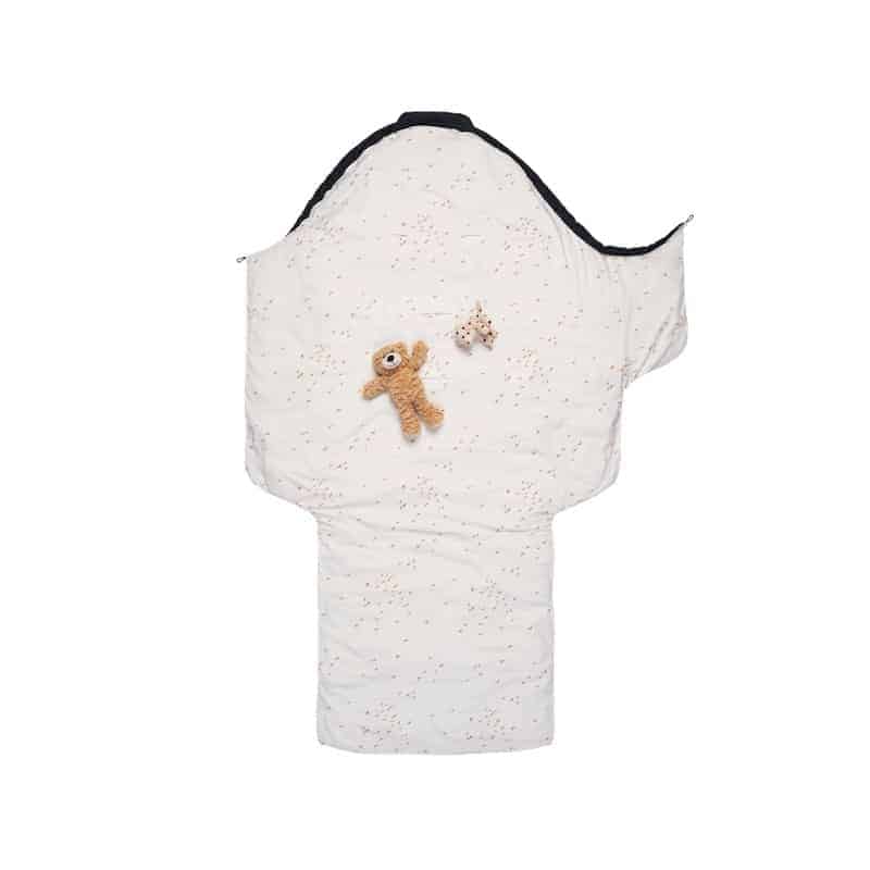 - Kan åbnes helt op og bruges som legetæppe eller dyne .