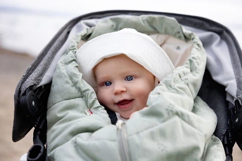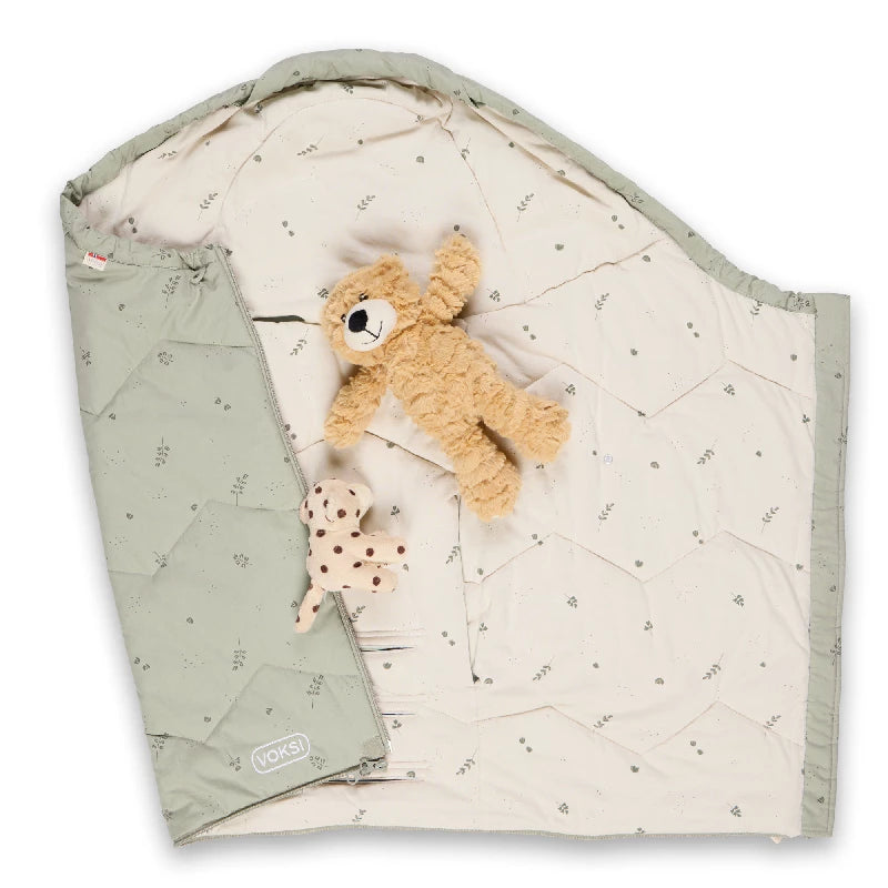 Voksi® Sky Light har en inderside af blødt bomuld og er fyldt med et tyndt lag af genindvunden polyester. Køreposen leveres med en forlængerdel, der betyder, at den kan bruges i mange år.