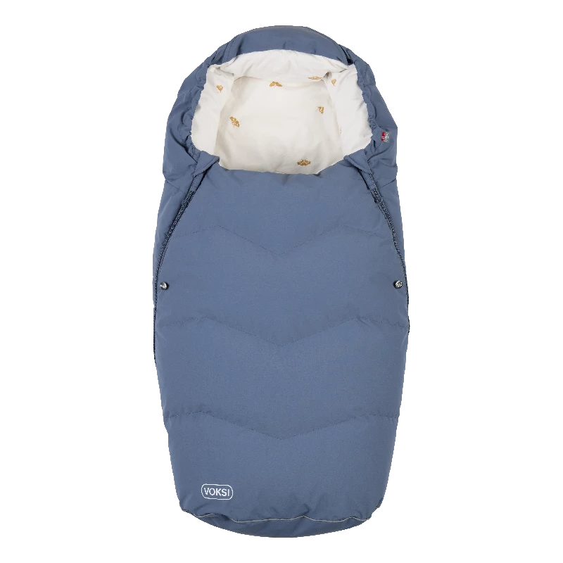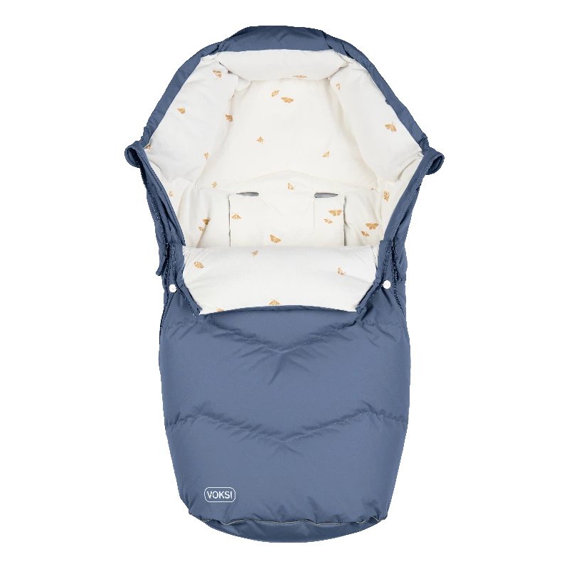 Det er luften mellem dunfibrene som giver maksimal isolering og holder barnet varmt igennem efteråret og vinteren. Tekstilet på indersiden er fremstillet af blød bomuld, som gør det blødt og behageligt for barnet at ligge på. Yderstoffet er vindtæt og har en vandsøjle på 8000 og er behandlet med BIONIC-FINISH®ECO som betyder at den er vandafvisende. Når det regner meget anbefaler vi at bruge et regnslag på ydersiden. Alle materialerne i Voksi Urban er OEKO-TEX®standard 100, klasse 1 certificeret, som er et kvalitetsmærke, der sikrer, at ingen af materialerne i produktet indeholder skadelige kemikalier. Den unikke udformning af rygåbningen gør, at køreposen nemt kan monteres og bruges i vogne med forskellige seler.