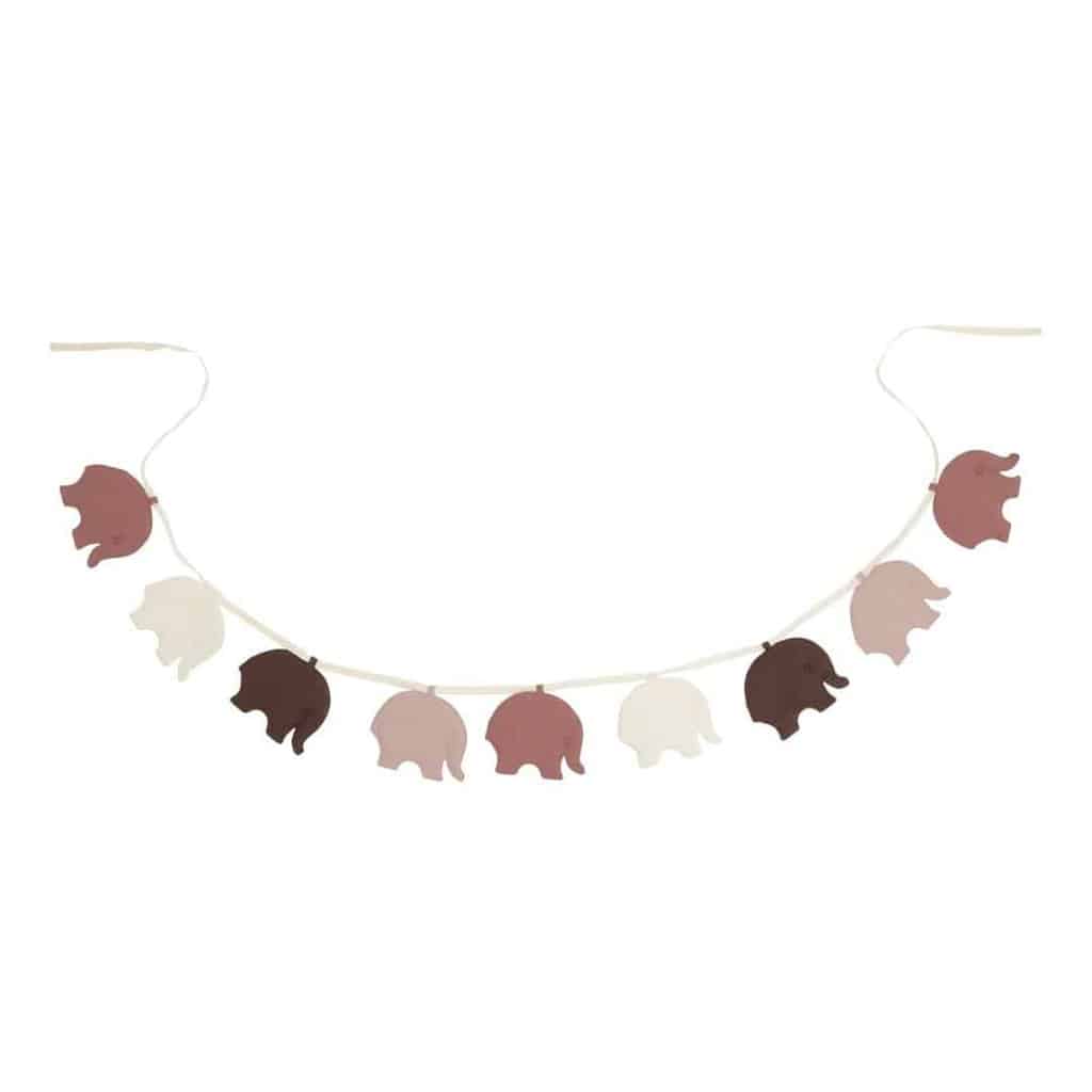 Elefantguirlande med ni små elefanter i de smukkeste farver, der passer perfekt ind på børneværelset.