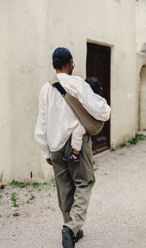 Når den bruges korrekt, giver Carrieren et tyngdepunkt tæt ind til kroppen for at undgå rygsmerter. Barnet må aldrig side løst/dingle.
