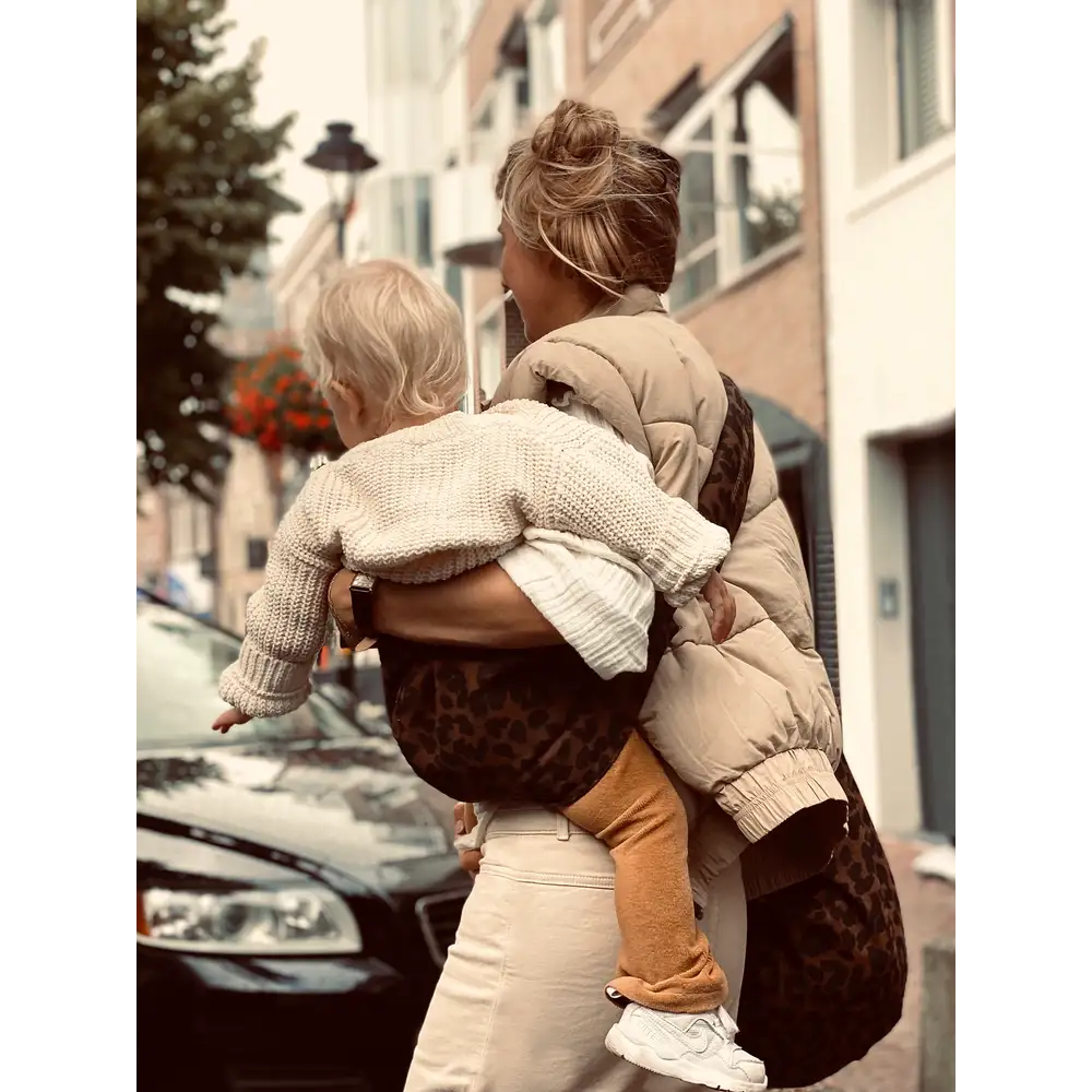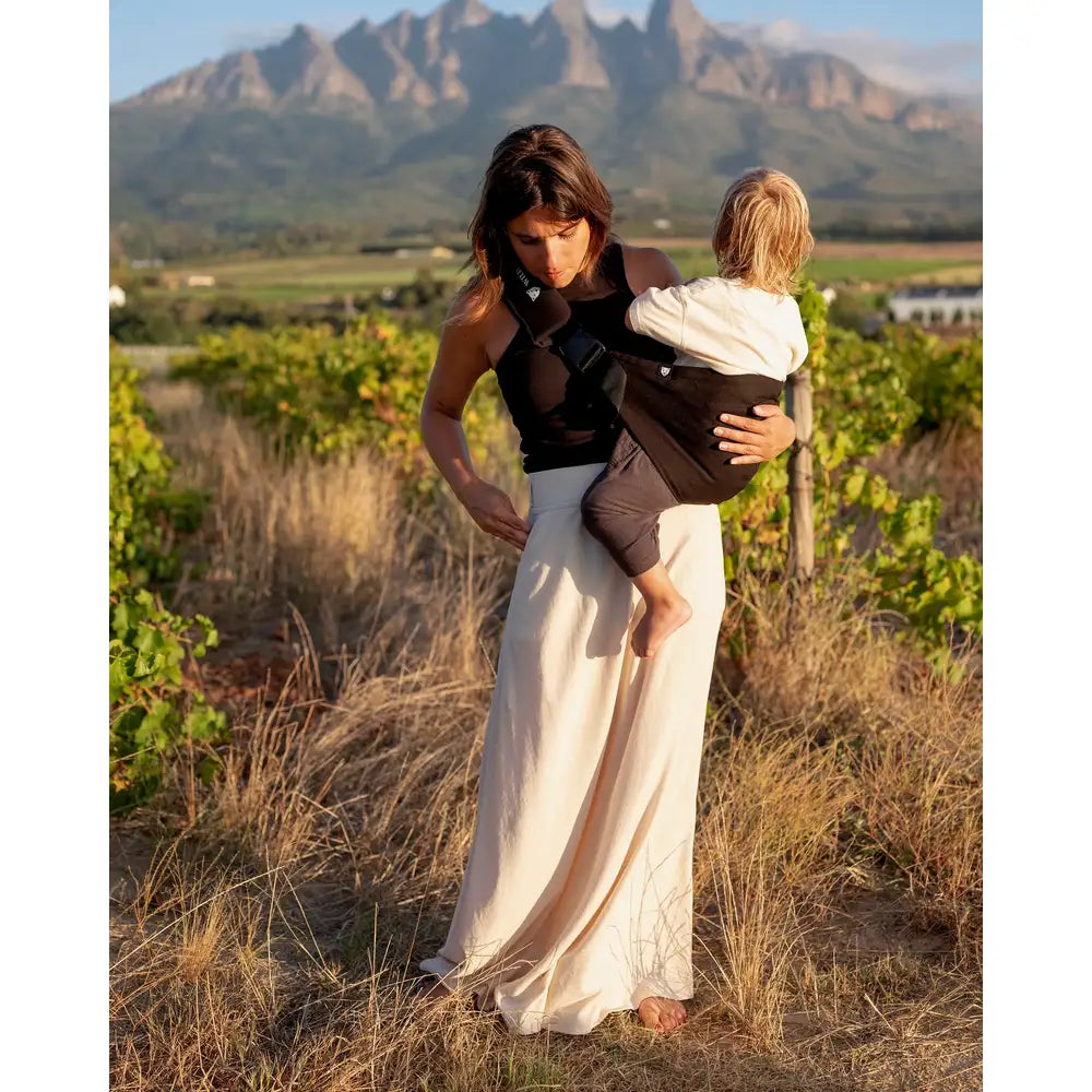 - Når den bruges korrekt, giver Carrieren et tyngdepunkt tæt ind til kroppen for at undgå rygsmerter. Barnet må aldrig side løst/dingle.