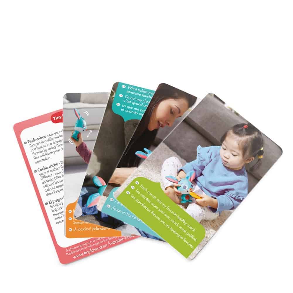 Wonder Buddies er dit barns nye bedste ven. Med 7 interaktive funktioner kan I lege Peek-A-Boo, fodre den eller udforske de andre sjove og underholdende aktiviter. Indeholder også 7 kort, der giver tips og ideer til dit barns udvikling.