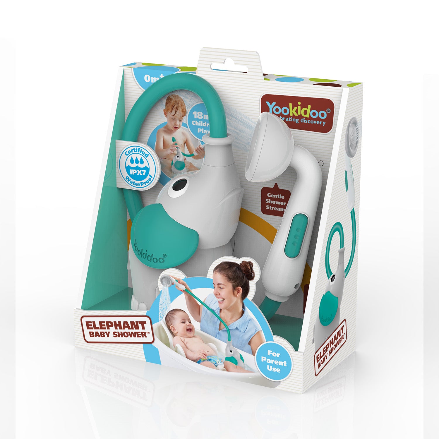 Yookidoo Elefant Bruser - Grøn, dit barns egen batteri-drevet bruser. Den er super sød og sjov, bruseren trækker vand fra badekaret og skaber en endeløs strøm af vand. Bruseren er en charmerende elefant med en lang snabel. Tryk på den lille knap og elefanten begynder at trække vand fra badekaret. Elefant brugeren er en god størrelse så barnet også selv kan lege med den.