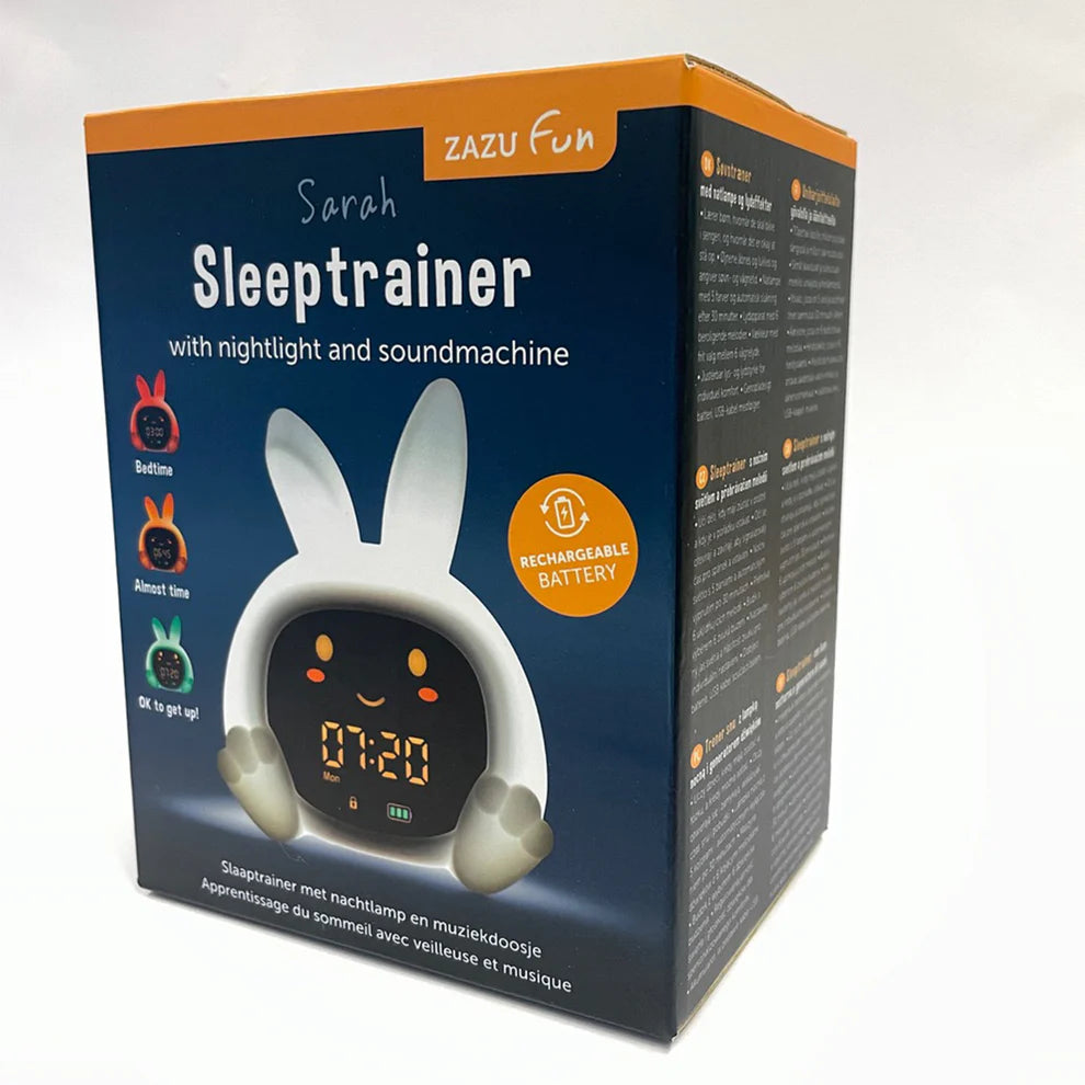 ZAZU Sarah er en charmerende og pædagogisk søvntræner, der hjælper børn med at forstå forskellen på nat og dag. Med farveskiftende lys og åbne/lukkede øjne viser Sarah tydeligt, hvornår det er tid til at sove – og hvornår det er okay at stå op.